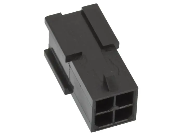 4-poligt kontakthus i Molex Micro-Fit serie för kabel- till kabel-anslutningar. Kontakthusen har snäpplås för att förhindra oavsiktlig urkoppling. 3mm delning. Upp till 5A strömtålighet. Bestyckas med crimpstift.