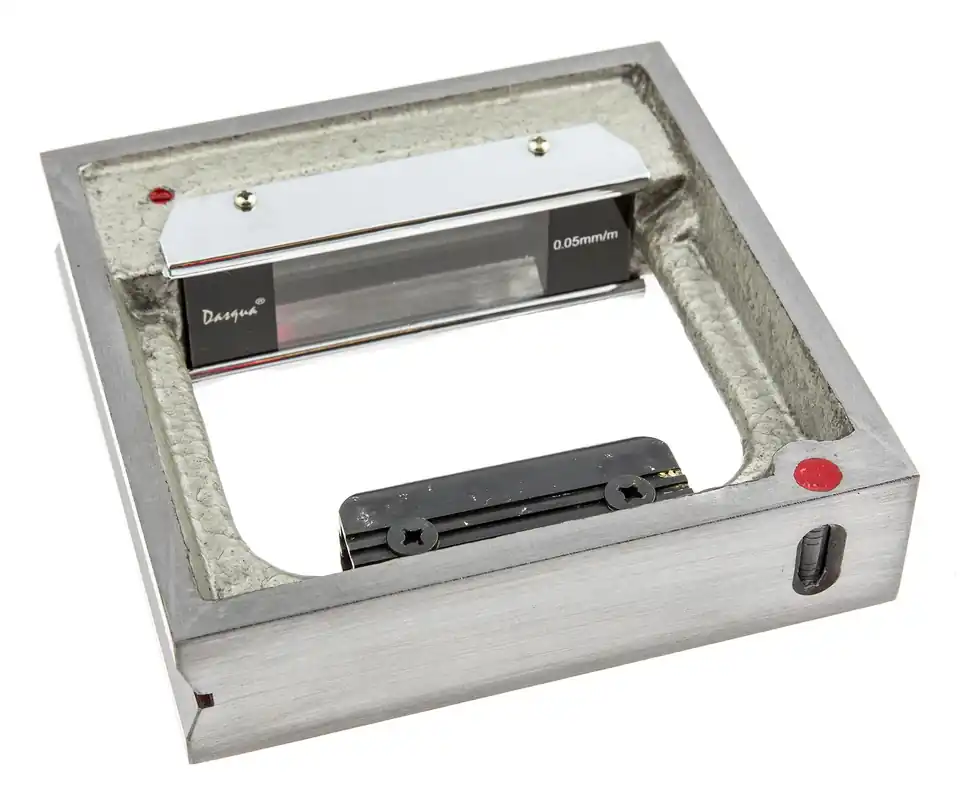 Dasqua 495198 är ett ramvattenpass på 150 x 150 mm med 0,05 mm:s avläsning. Enligt standard DIN877.