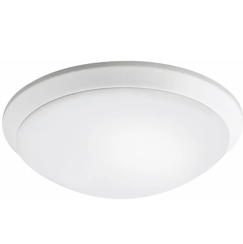 Vägg/-takarmatur med stomme i stål och opal kupa av termoplast. Komplett med drivdon. Anslutning: Till plint 3×1,5 mm².