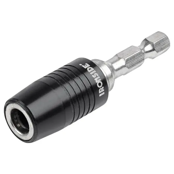 Kraftbitshållare med snabbväxelchuck och kraftig ringmagnet som håller skruven på bitset. Hållaren har en autostopp-funktion vid rätt djup. För ¼” bits och fästes direkt i skruvdragaren.
