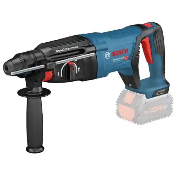GBH 18V-26 D Professional är en sladdlös borrhammare utformad för vertikal borrning och mejsling i betong och murverk. Den underhållsfria, borstlösa motorn levererar en slageffekt på 2,5 J som kan jämföras med effekten hos etablerade tryckluftsborrar med kabel från Bosch.