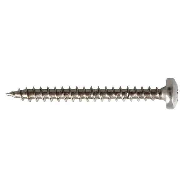 Träskruv med rundat huvud och pozidriv (Z) krysspår.