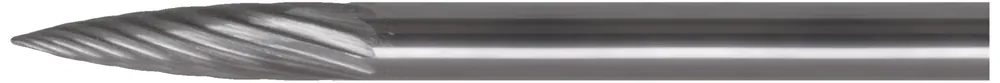 Roterande fil med spetsad form som ger god åtkomlighet i spår och på innerhörn. Mediumtandad med spånbrytare och tillverkad i hårdmetall.