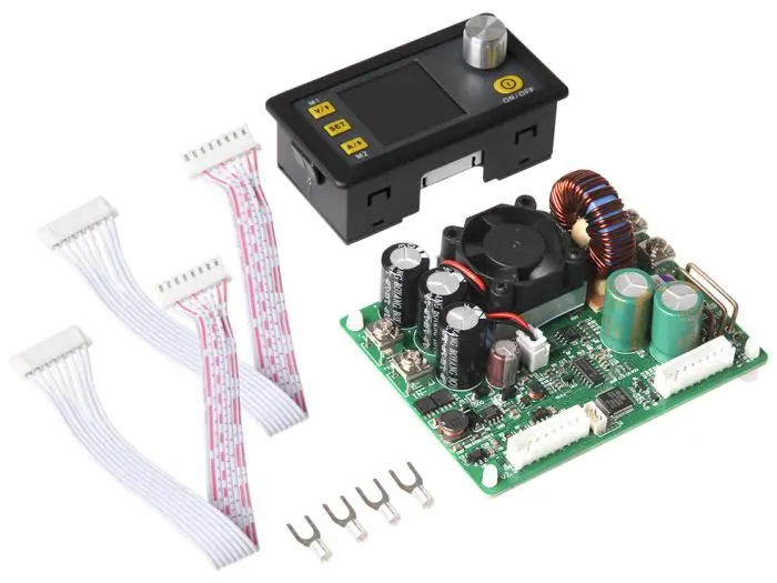 Liten programmerbar strömförsörjningsmodul med display för montering i panel. Strömförsörjningen är switchad och har hög verkningsgrad. Alla inställningar görs med knapparna och ratten på framsidan. Modulen kan lämna antingen en fast spänning eller ström och alla inställningar sparas till minnet. På kortet finns anslutning för serieport (för t.ex. USB- seriellomvandlare eller Bluetooth) och program för Windows och Android finns att ladda ner. Med mjukvaran kan alla inställningar programmeras och aktuella värden läsas ut. Inspänningen måste vara högre än önskad utspänning (step-down).