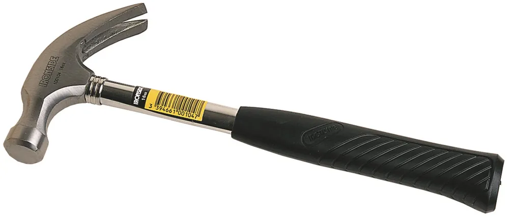Snickarhammare som är härdad och förkromad. Med ovalt stålrörsskaft och ett perforerat, greppvänligt gummihandtag.