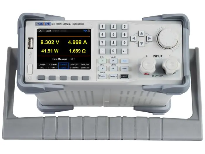 SDL1030X-E series Programmable DC Electronic Load has a 3.5 inch TFT-LCD display, a user-friendly interface and superb performance specifications. The SDL1030X-E feature an input range of 150 V/30 A 300 W. The SDL1030X-E has a measurement resolution of 1 mV/1 mA and adjustable current rise times from 0.001 A/ìs~2.5 A/ìs.