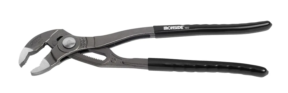 Polygriptång av kromvanadinstål med gripvidd på 70 mm, med polerat skyddslackerat huvud och extra stor gripvidd och snabbinställning. Utrustad med plastdoppade grepp.