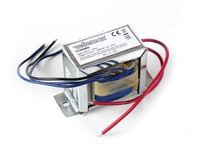 EI-transformator med dubbla sekundärlindningar som kan anslutas i serie för att ge två separata spänningar, t.ex. ±12V eller dubbla märkspänningen. Transformatorn har två fästhål på vardera sida för montering i chassie.