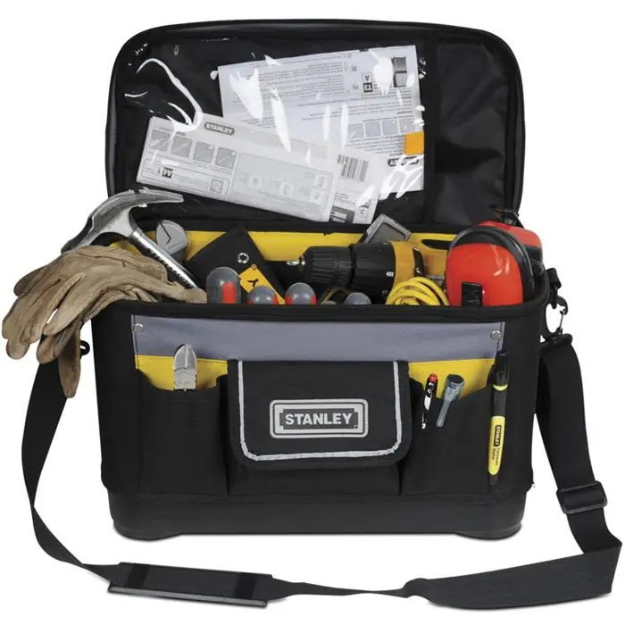 40 cm slitstark och hållbar verktygsväska med slutna framfickor för säker förvaring av smådelar och personliga tillhörigheter. Justerbar axelrem ger enkel transport av dina verktyg. Flera interna och externa fickor för maximal ordning på verktygen samt separat genomskinligt dokumentfack som hjälper till att hålla dokument och personliga ägodelar rena och skyddade. Stark, förstärkt plastbotten för skydd mot väta och fukt. Starka, stabila hållbara hörn håller strukturen solid.