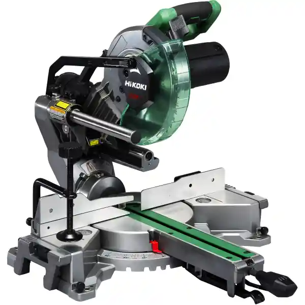 HiKOKI C8FSHG är en 1100W kap- och gersåg för klingdiametern 216 mm och med ett obelastat varvtal på 5300 /min. Kap-och gersågen är försedd med smart glidskena som gör att sågen kan placeras intill väggen.