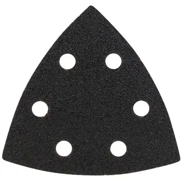 6-hålade slippapper på 93x93x93 mm. Passar för att slipa hårda material, lack och plast. Kornstorlek på 80.  KompatibilitetPassar till deltaslipar med en trekantig slipplatta på 93x93x93 mm.