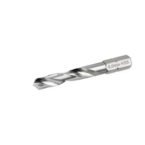 Kort spiralborr av HSS-kvalitet med ¼” sexkants bitsfäste.