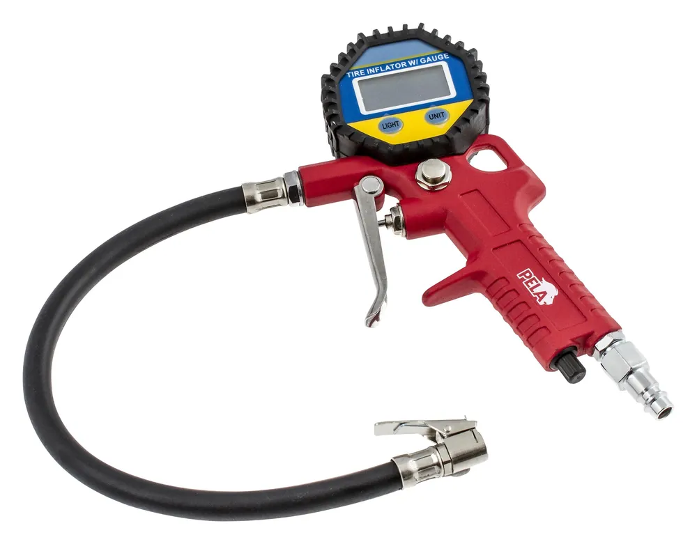 PELA 495947 är en digital luftpåfyllare med tydlig LCD-display. Medföljer flexibel gummislang på 36,5 cm med snabbkoppling. Arbetstryck 2-4 bar (30-60 psi), maximalt tryck 8 bar (110 psi). Anslutningsgänga 1/4″ inkl. snabbkopplingsnippel. Drivs med 2 st AAA-batterier som medföljer. Noggrannhet: ± 0,03 bar (ca 0,043 psi)