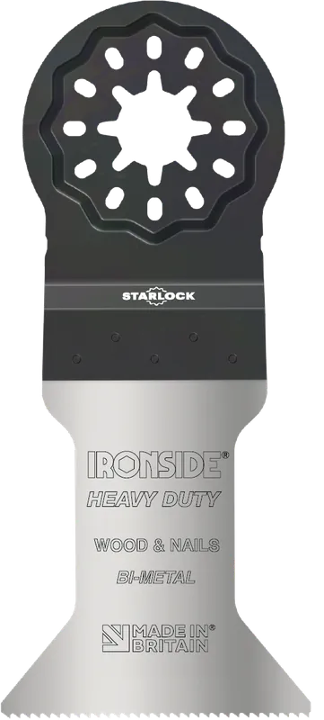 Ironside 202908 är ett bi-metall multiverktygsblad som är idealiskt för snitt i trä, spik, icke-järnhaltiga metaller, plast, med mera. Slitstark och mångsidig bimetalltandning.