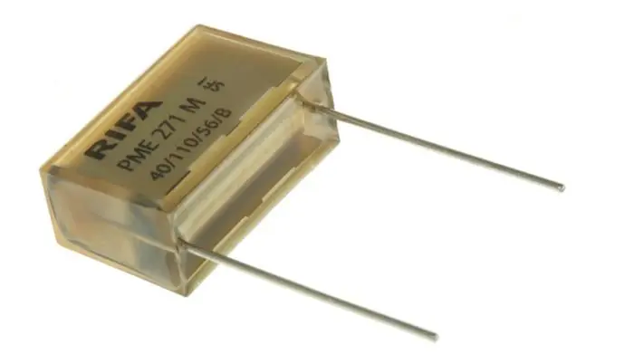 Avstörningskondensator för nätanslutna apparater. Kopplas parallellt över uttaget mellan fas och nolla. Används för att minska EMI- och RFI-störningar från elnätet.