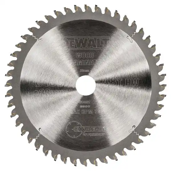 Lasertillverkad cirkelsågklinga med hårdmetalltänder för portabel såg. Sågklingan är en del av en mångsidig klingserie från Dewalt, med klingor för både trä och icke-järnhaltiga metaller, och för både portabla och stationära maskiner. Sågklingan är avsedd för all allmän sågning, kapning och klyvning av rent trä och skivmaterial. Klingan har expansionsspår som behåller klingans form.
