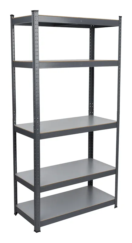 PELA 538032 är en lager-/förvaringshylla som har 5 stycken laminerade spånskivehyllplan som klarar 265 kg:s belastning vardera. Det är möjligt att dela hylla på mitten för en lägre sektion. Enkelmontering utan bult. Det räcker med en hammare eller gummiklubba. Alla plåtdetaljer är pulverlackerade i grå hammarlack finish.
