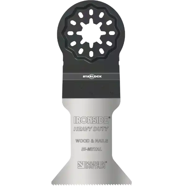 Ironside 202908 är ett bi-metall multiverktygsblad som är idealiskt för snitt i trä, spik, icke-järnhaltiga metaller, plast, med mera. Slitstark och mångsidig bimetalltandning.