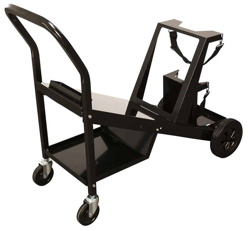 Pela 488483 är en svetsvagn i stabil stålkonstruktion med lutad hylla för smidig förvaring och åtkomst av svetsen.