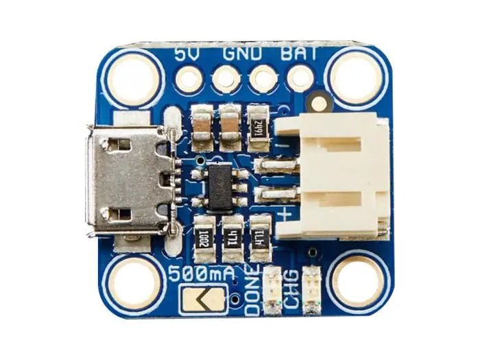 Liten och smidig LiPo/LiIon-laddare. 5V ansluts med vanlig microUSB eller lödpunkter, batteri med lödpunkt eller en vanlig JST-PH-kontakt. Laddar normalt med 100mA laddström men en bygel möjliggör en snabbare 500mA laddström. Observera att man endast kan ladda batterier större än 500mAh om man har gjort den modifikationen!