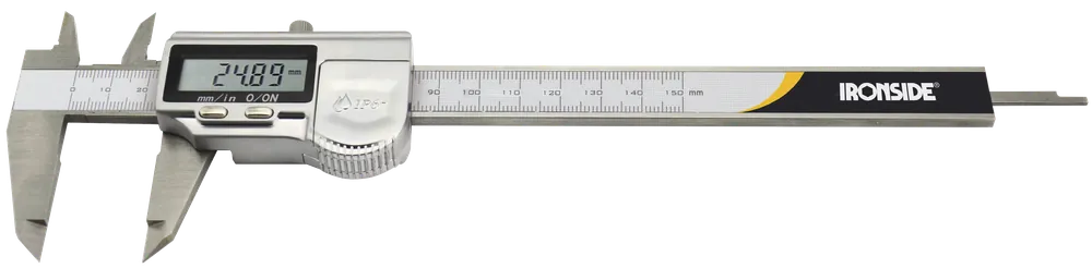Skjutmått som är digitalt och vattentätt samt klassat enligt IP 67. Försett med djupmått samt spetsar för invändig mätning. Med låsskruv och omställningskanpp för mm/tum kombinerat med nollställning.
