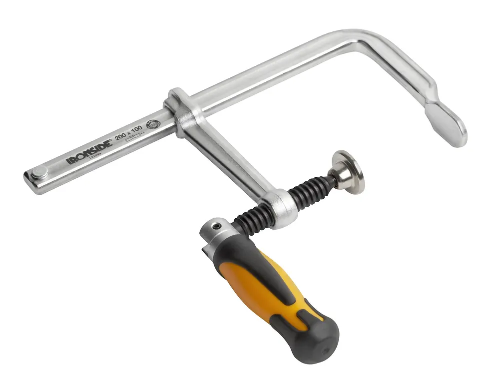 Skruvtving som är helsmidd av stål och har blankförzinkad, profilerad skena. Med kulledad tryckbricka och ergonomiskt vinklingsbart bikomponentgrepp som möjliggör en högre spännkraft samt snabbare pressning.
