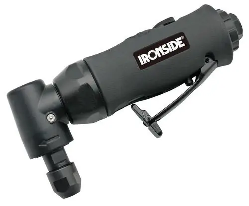 Ironside 103045 är en högvarvig slipmaskin med vinklat huvud avsedd för slipstift och roterande filar och liknande verktyg avsedda för höga hastigheter. Handtag i kompositmaterial.