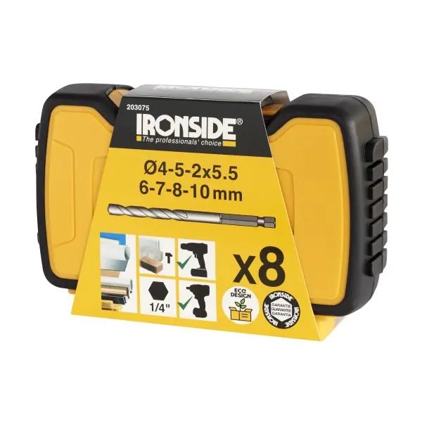 Sats med 8 borr: 4-5-2×5.5-6-7-8-10 mm.