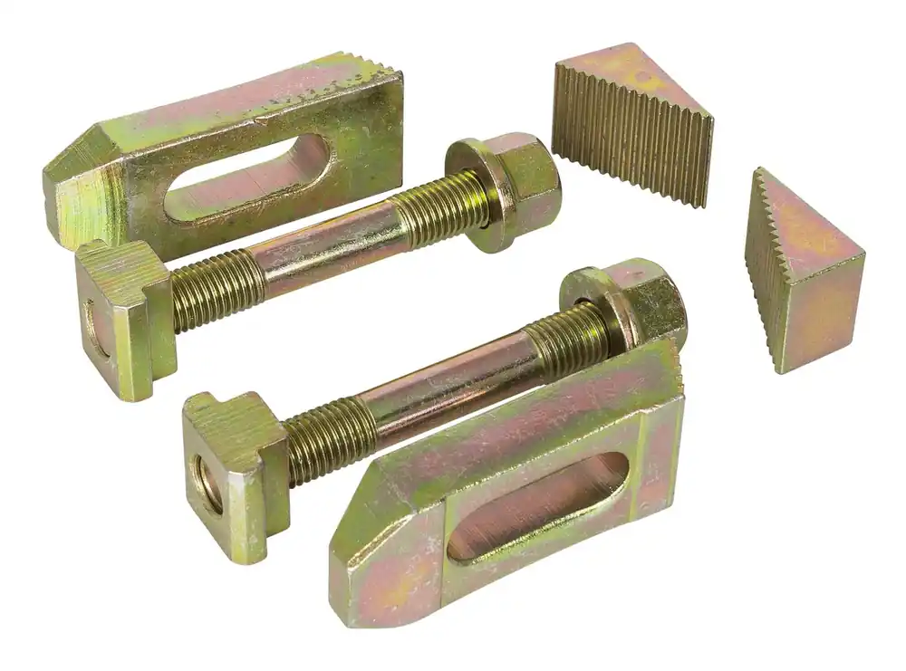 PELA 494744 är en spännjärnsats mini T-spår 18 mm M16. Innehåller 2 st uppspänningsbultar M16x125 mm, 2 st T-spårsmuttrar, 2 st flänsmuttrar, 2 st spännarmar 100 mm samt 2 st spännkilar. Levereras i papplåda.
