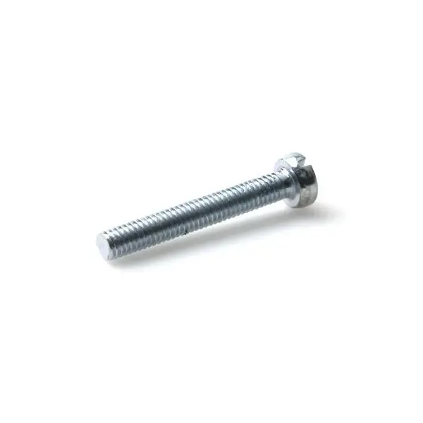 M-gänga. Spårskruv med cylindriskt huvud enligt DIN 84 A ( ISO 1207 ). H=helgängad.