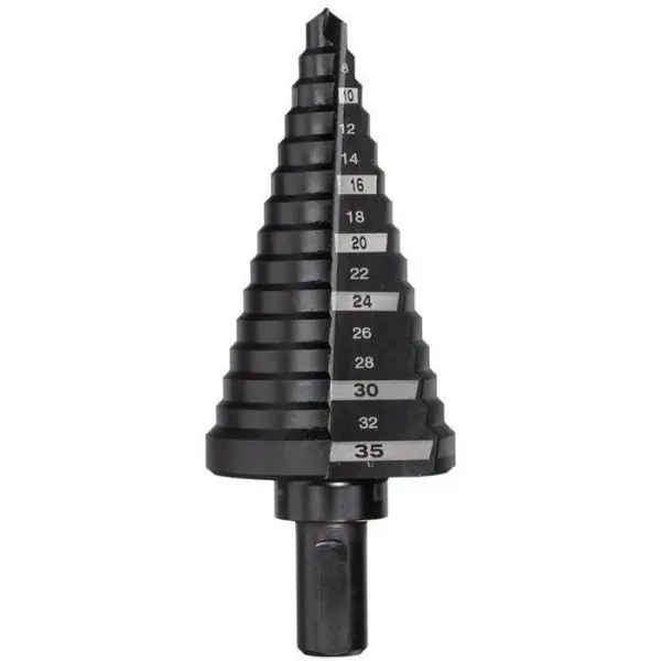 Milwaukee 48899335 är en stegborr med 14 steg – använd ett borr för att borra flera storlekar. Lämpar sig bl.a. för att förstora befintliga hål. Med laseretsad storleksguide för maximal hållbarhet.