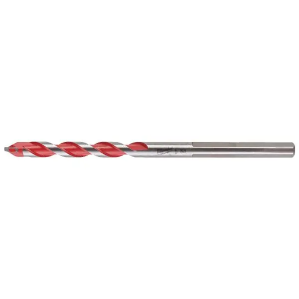 Mur- och stenborr från Milwaukee med tungsten karbidspetsar (TCT) som möjliggör borrning i betong, hålmursblock, murbruk, skiffer och granit. Från Ø5 mm har borren ett trekantsfäste som förhindrar att borren glider i chucken. Ø3 & 4 mm borrar har runt fäste. En röd spiral gör det enkelt att identifiera borren i verktygslådan. Kan användas både i hammar- och borrläge.