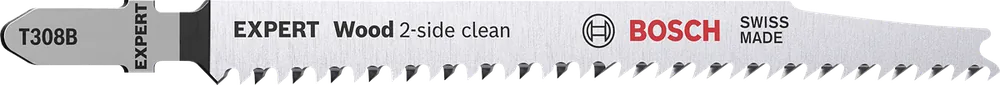 Finsnickare och träarbetare har alltid satt en ära i att se till att den ”rena sidan” av ett sticksågssnitt hamnar på den synliga delen av arbetsmaterialet. Ibland går det att vända på arbetsstycket. andra gånger kan sticksågen helt enkelt hållas upp och ner. Eller så kan du använda EXPERT ’Wood 2-side clean’. som erbjuder perfekta snitt utan flisning på båda sidorna. tack vare dubbla tandrader.