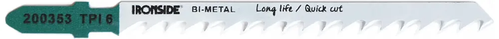 Ett 100x6x1,3 mm sticksågblad med högkvalitativ bimetall-tandning för snabba skär, för användning i trä med tjocklek 5-50 mm. Bladet passar mjuka träslag, spån-, laminat- och boardskivor, speciellt för figursågning . Levereras som 5-pack.