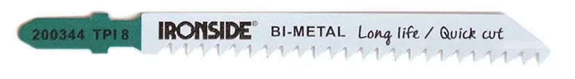 Ett 100×9,6×1,3 mm sticksågblad med högkvalitativ bimetall-tandning för snabba skär, för användning i trä med tjocklek 4-50 mm. Bladet passar för rak och grov sågning i hårda och mjuka träslag, spånskiva, plywood och fiberskivor. Levereras som 5-pack.