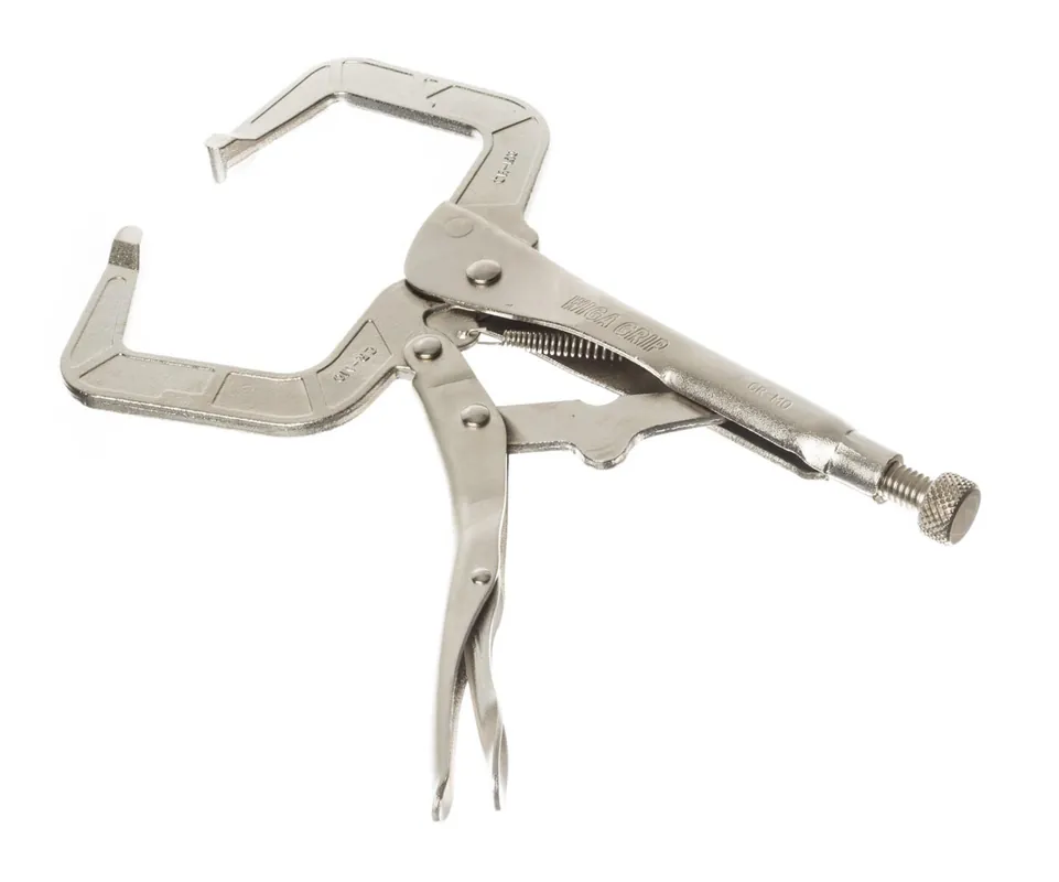 Pela 494231 är en svetsgriptång med fast käke som spänner runt skrymmande detaljer. Av CR-MO stål, helförnicklad, låsning med reglerbart tryck.