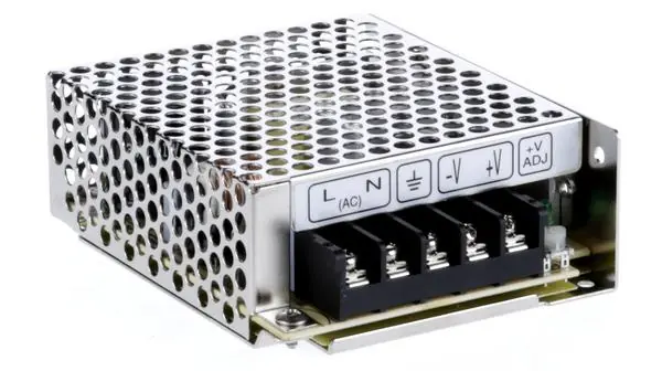 Kompakt switchad strömförsörjning med en fast utgång på 12VDC. Skruvplintar för samtliga anslutningar. Trimpot för justering av utspänning. Skyddat mot överbelastning, överspänning och kortslutning.