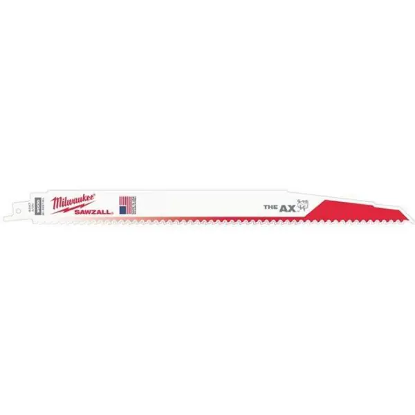 Milwaukee 48008027 är ett tigersågblad, The Ax, för trä med spik och har en bladlängd på 300 mm och 5 Tpi. Perfekt för instickssågning och åtkomst i begränsade utrymmen. Maximal kapacitet i trä med spik är 10-250 mm.