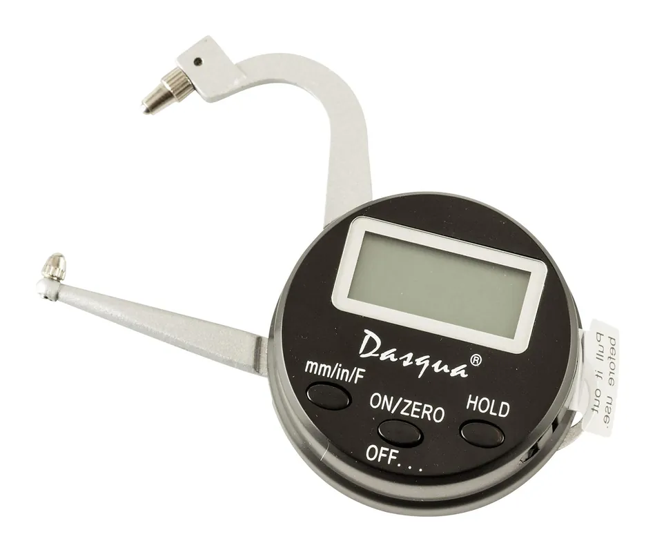 Dasqua 495162 är en digital tjockleksmätare med Hold-funktion, tydlig display och utläsning av millimeter, tum och fraktion. Tjockleksmätaren har ett mätområde på 0-25 mm, 35 mm i mätdjup och en mätnoggrannhet på 0,01 mm.