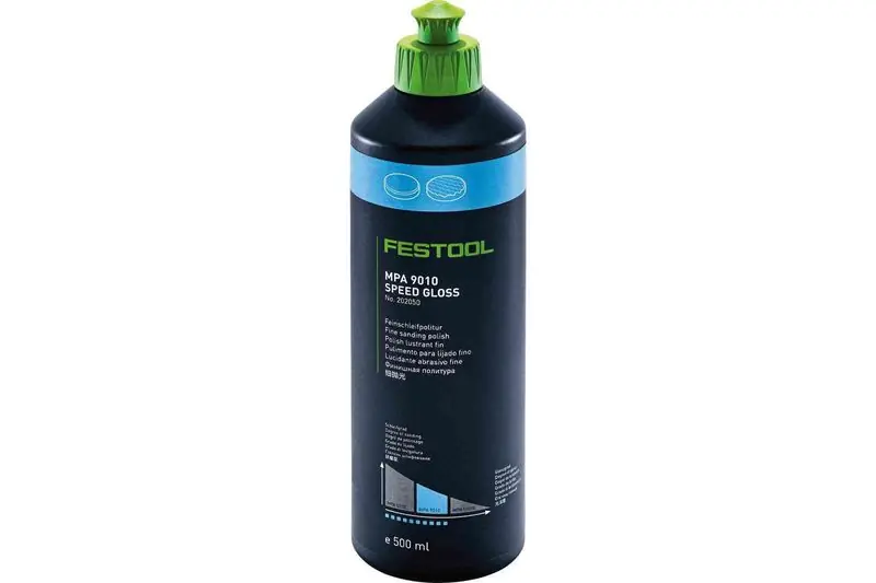 Festools polermedel MPA 9010 är ett polermedel som är utan silikon, vattenbaserat och är tänkt att användas med Festools blå polersvamp.