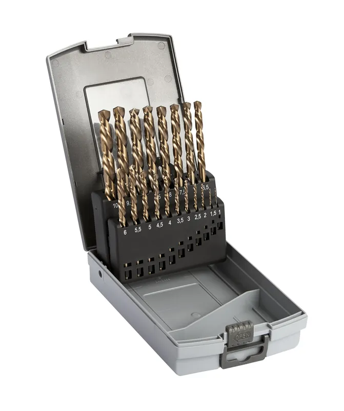 Vänsterborr för bland annat urborrning av skruv som gått av. 135° graders spets, från 1,5mm delad för snabb och enkel centrering av borrhålet. 19 delars sats med borr mellan 1-10mm.