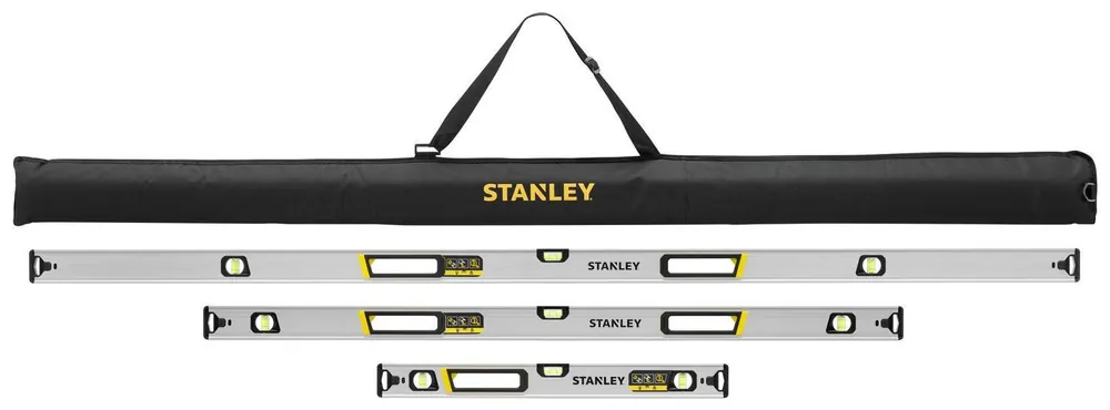 Fatmax XTREME vattenpasskit med väska. 60 cm, 120 cm & 180 cm. Designade för optimal greppvänlighet, även med en hand. Designade med en kontinuerlig kant över centrumlibellen gör det möjligt att dra eller rita obrutna linjer. Avtagbara ändlock möjliggör exakt positionering och markering enda in i hörn. Fräst primärkant på 0,5 mm/m libellnoggrannhet, med en valfri sekundär noggrannhet på 0,75 mm/m. Fullt säkrade libellhållare skyddar libellen mot fallskador, vilket säkerställer lång livslängd och bibehållen noggrannhet. Förstorade libeller ger bättre sikt från sidan och gör det lättare att läsa av och ger mer exakt vattenpassning.