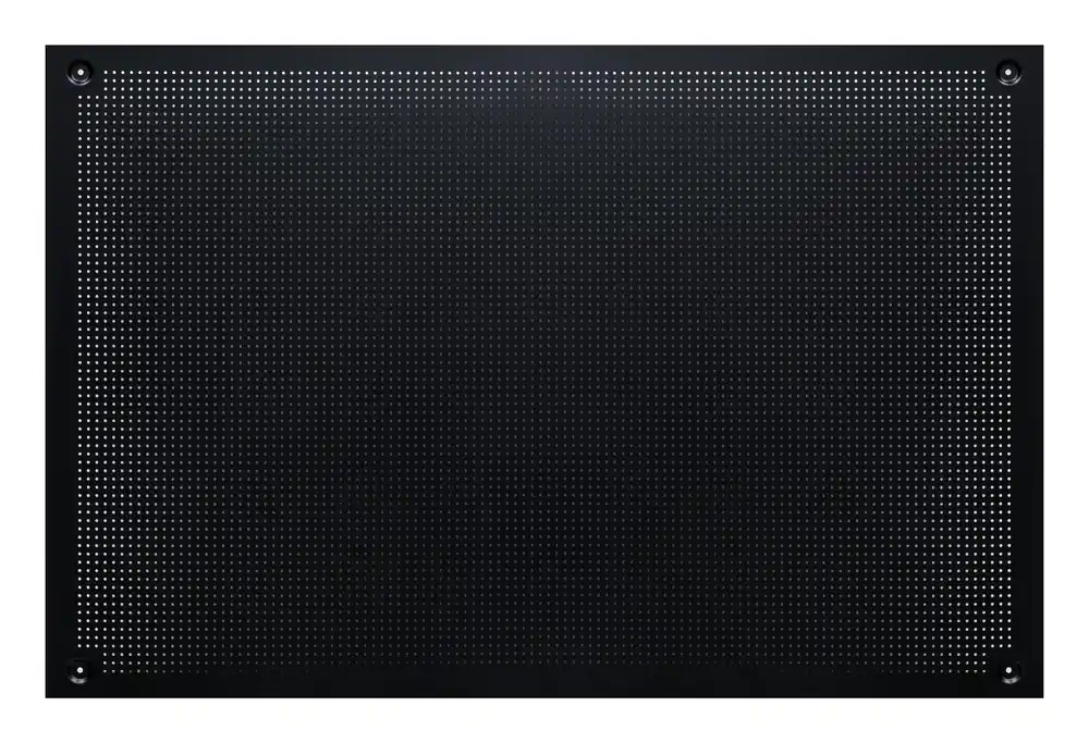 PELA 519771 är en pulverlackerad verktygstavla på 950 x 1450 mm som är tillverkad i kraftig plåt med vikt ytterkant och runda hål. Tavlan passar tillsammans med krokar, hållare, hylsor mm. Hålen är Ø4 mm och passar för Ø4,8 mm skruv. Centrum till centrum mellan hålen är 12 mm och tavlan har en plåttjocklek på 1,4 mm.