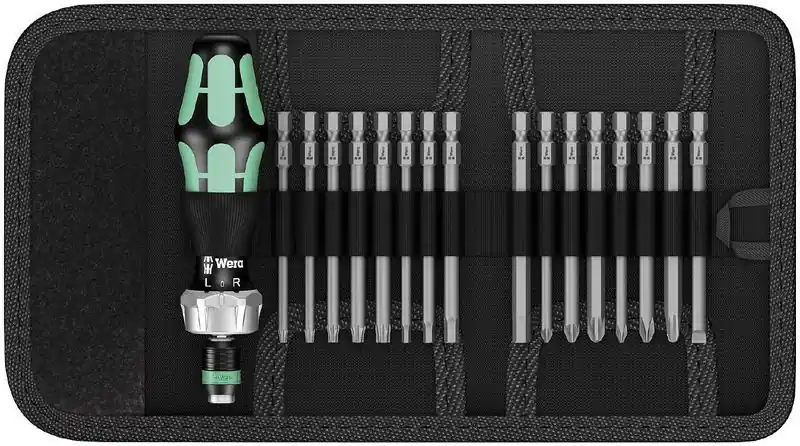 – Innehåller en bitshållare i form av skruvmejselhandtag Kraftform 816 RA och 17 st 89 mm långa bits.